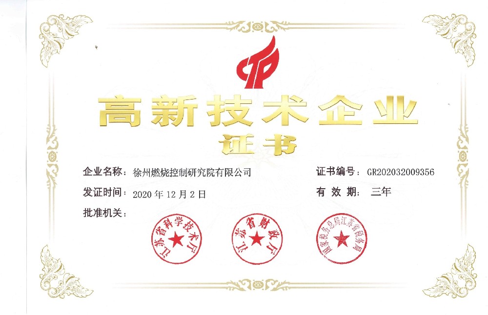 燃控院高新技術(shù)企業(yè)證書(shū)